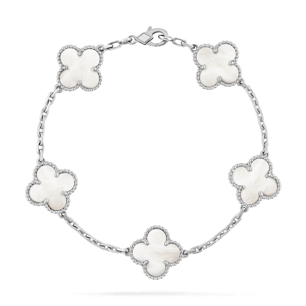 "White Mother-of-Pearl Five-Flower Bracelet - Attract Wealth, Prosperity Awaits!"